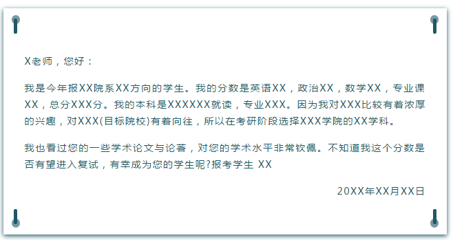信中要介紹自己報考的專業方向,自己的分數,以及自己本科學的什么專業,本碩是否一致,以及對報考院系級導師的向往等等。