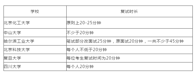 一般來講,復試時間在20-30分鐘,英語時長為3-5分鐘,剩下較多時間為專業(yè)課提問。但目前復試方案里公布復試時長的學校,發(fā)現(xiàn)基本也集中在20分鐘。