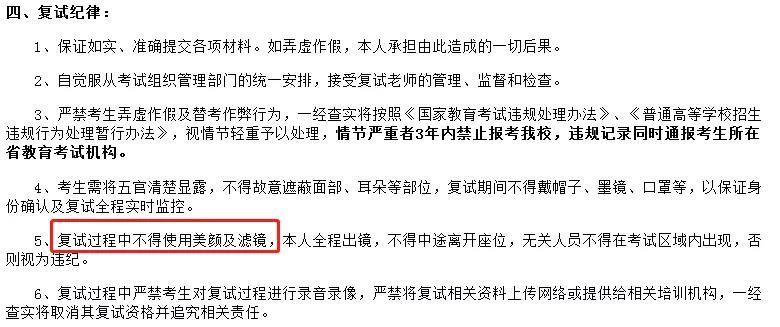 天津大學要求復試過程中不得使用美顏及濾鏡: