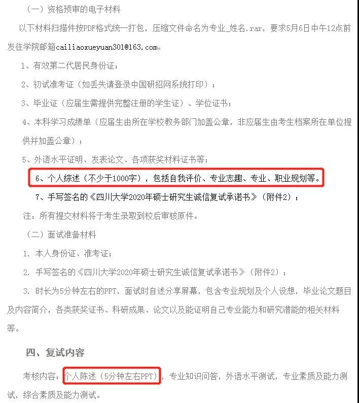 四川大學材料科學與工程學院兩者都要,要求上交不少于1000字的個人綜述,以及個人陳述5分鐘左右的PPT匯報。