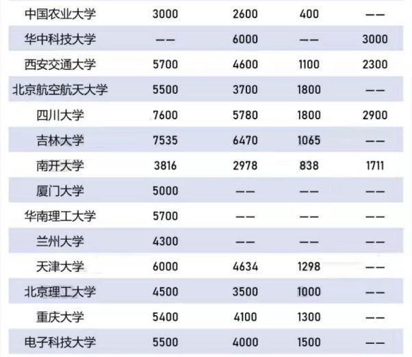 除了大多數(shù)雙一流高校進(jìn)行擴(kuò)招以外,還有廈門(mén)大學(xué)、南京大學(xué)、華南理工大學(xué)等部分高校基本上與去年持平,但這些高校2020年招生計(jì)劃皆已超過(guò)5000人,分別為5000人,5400人和5700人。