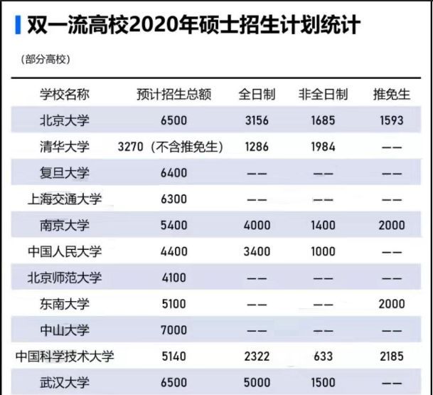 全國(guó)30多所985、211以及雙一流高校陸續(xù)公布了2020年碩士研究生招生計(jì)劃,在這份招生計(jì)劃中包括全日制碩士生招生數(shù)、非全日制碩士生招生數(shù)以及推薦免試生的招生數(shù)。