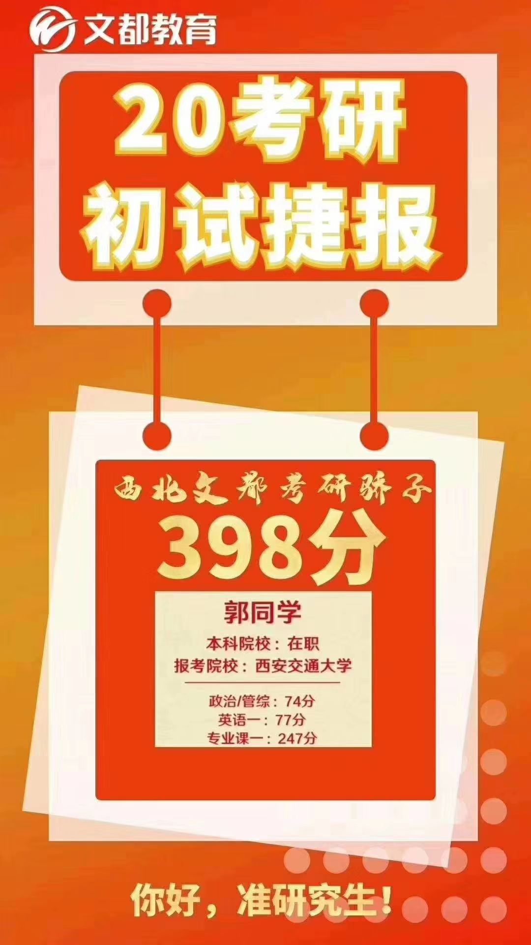 文都簡介:陜西文都,成立于2009年,致力于為考研學(xué)子提供一站式全方位輔導(dǎo)服務(wù)。目前,陜西文都已建立起包括遠程一卡通、全科彩虹卡、單科通關(guān)班、短期特訓(xùn)班、全科特訓(xùn)班在內(nèi)的考研課程體系,基本覆蓋了考研學(xué)子所有課程需求。陜西文都教育共有12大分校,在西安高校建立起58個教學(xué)點,每年招生規(guī)模達萬余人,400+高分學(xué)員層出不窮,作為陜西省著名考研輔導(dǎo)品牌,以其先進的教學(xué)理念、優(yōu)質(zhì)的學(xué)員服務(wù)和出色的教學(xué)成果,贏得了眾多考研學(xué)子的好評和信賴。