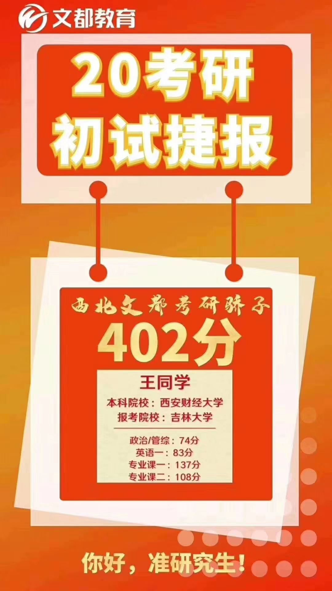 文都簡介:陜西文都,成立于2009年,致力于為考研學(xué)子提供一站式全方位輔導(dǎo)服務(wù)。目前,陜西文都已建立起包括遠(yuǎn)程一卡通、全科彩虹卡、單科通關(guān)班、短期特訓(xùn)班、全科特訓(xùn)班在內(nèi)的考研課程體系,基本覆蓋了考研學(xué)子所有課程需求。陜西文都教育共有12大分校,在西安高校建立起58個教學(xué)點,每年招生規(guī)模達(dá)萬余人,400+高分學(xué)員層出不窮,作為陜西省著名考研輔導(dǎo)品牌,以其先進(jìn)的教學(xué)理念、優(yōu)質(zhì)的學(xué)員服務(wù)和出色的教學(xué)成果,贏得了眾多考研學(xué)子的好評和信賴。