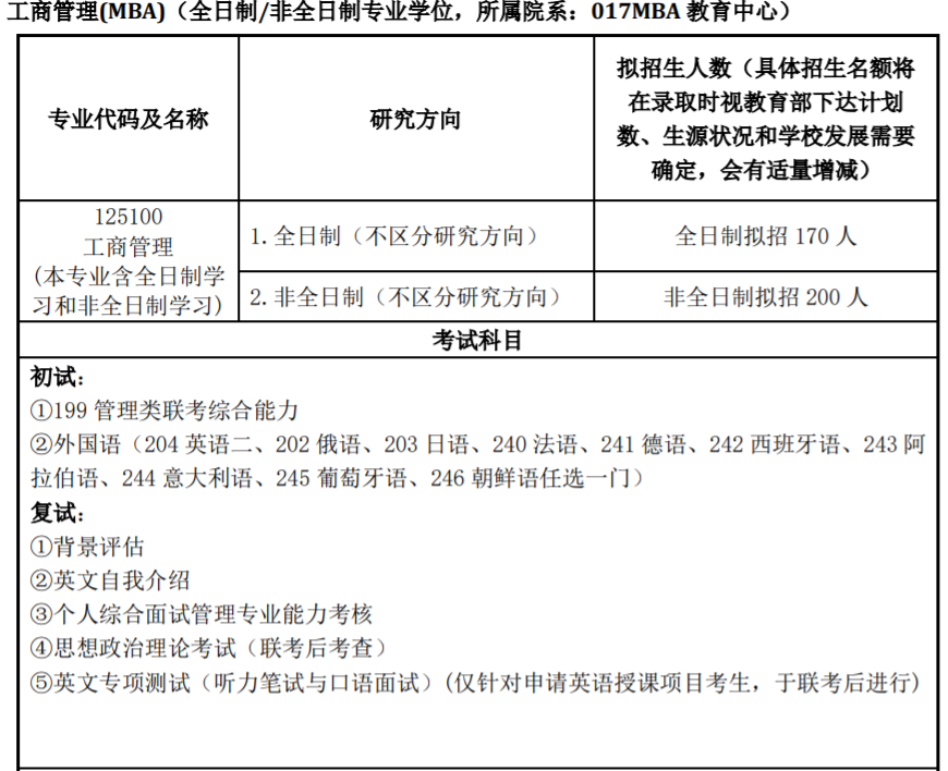 它的招生人數很多,而且作為語言類學校,初試外語可以在指定語種內自由選擇。上海外國語的MBA也是國家線進復試,有興趣可看看,畢竟是在上海,城市優勢+分數優勢,我覺得考上是挺值的。