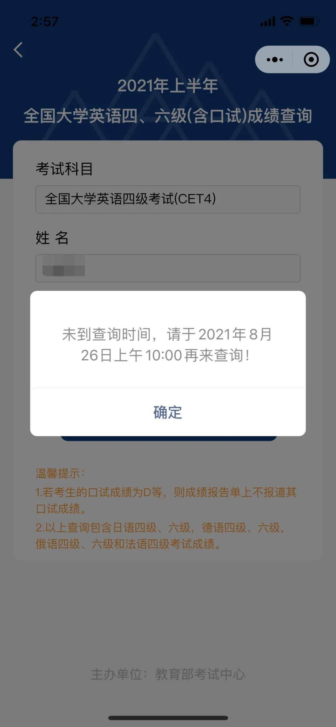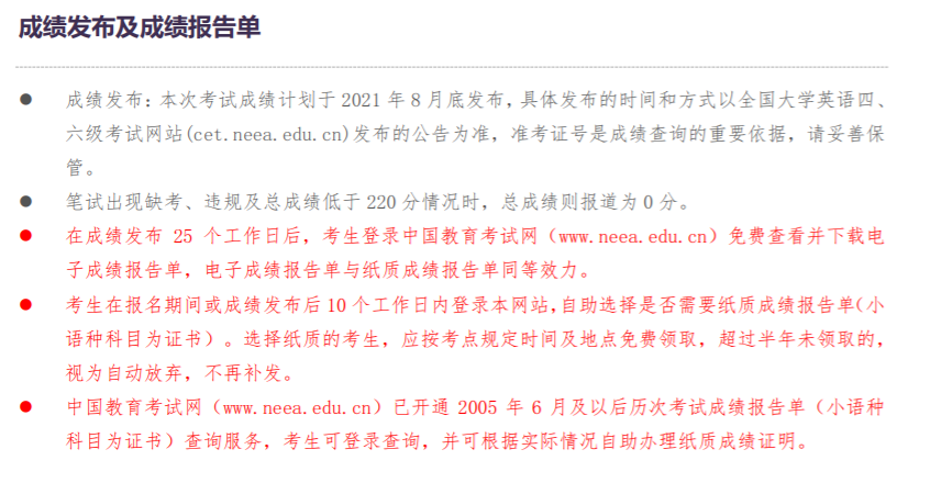 中國教育考試網(wǎng)公布2021年上半年四六級成績將于8月26日 上午10:00發(fā)布! 大家后天就能查成績啦!