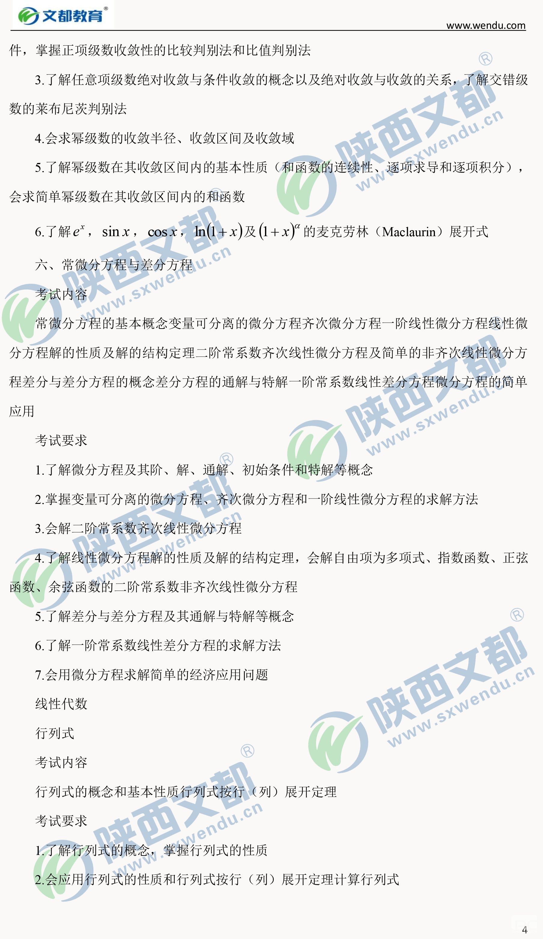 2018年全國碩士研究生招生考試數學考試大綱(數學三)