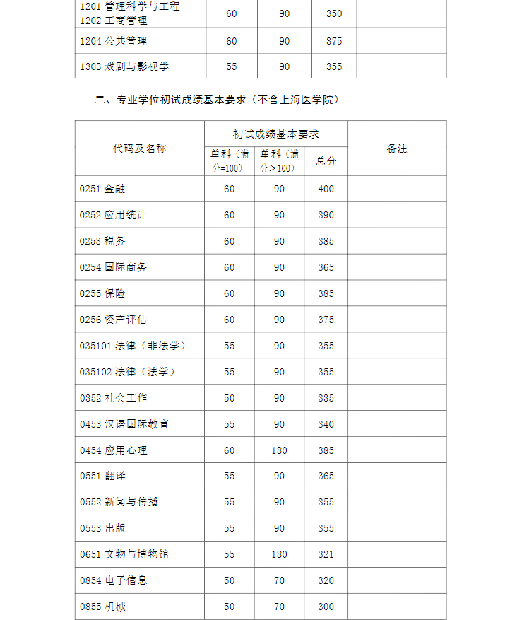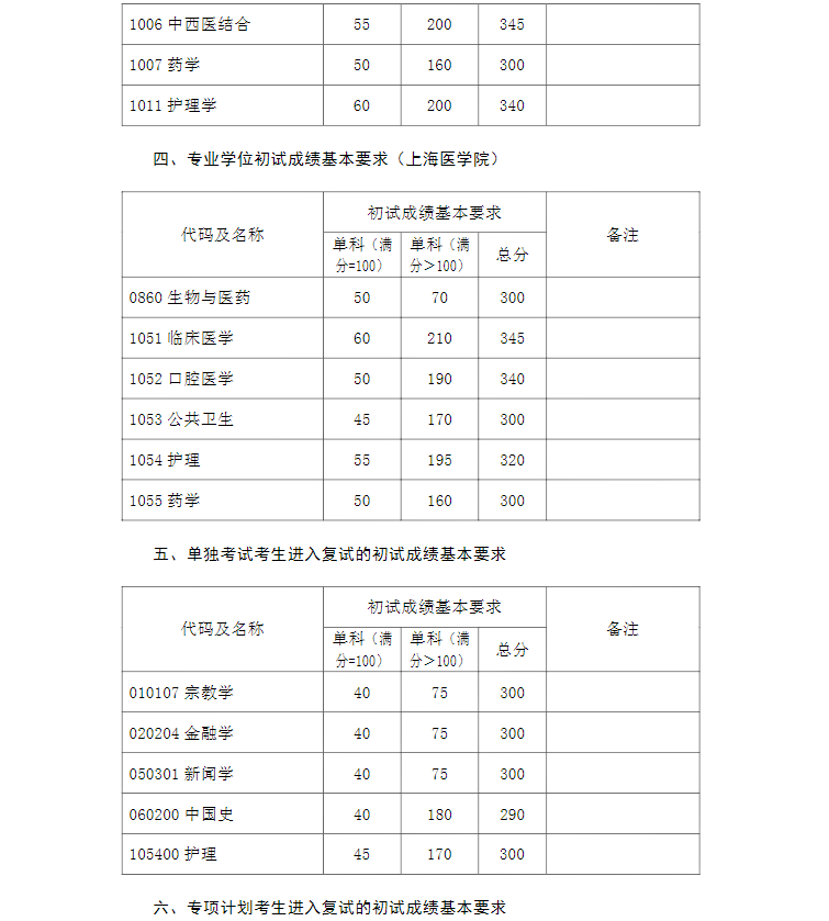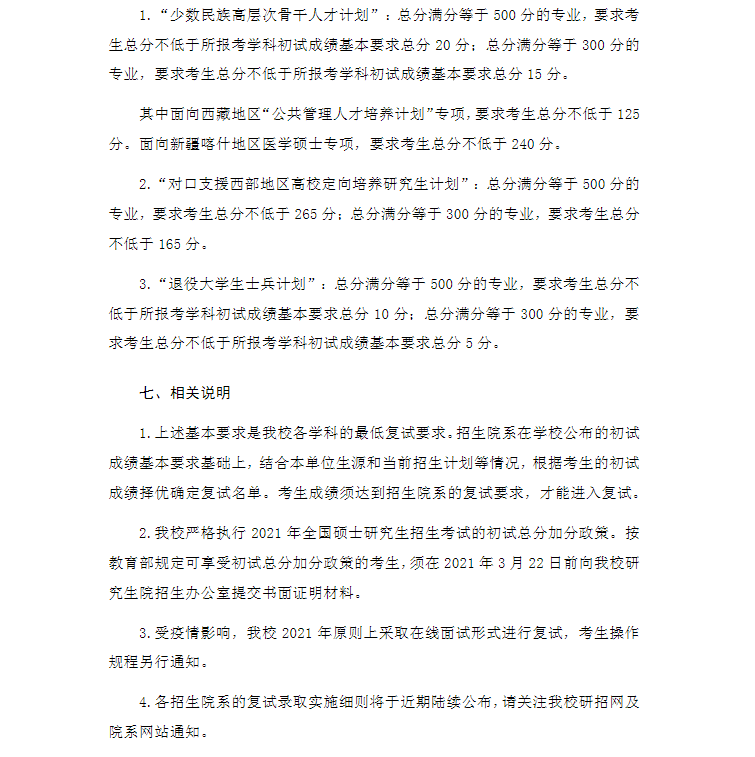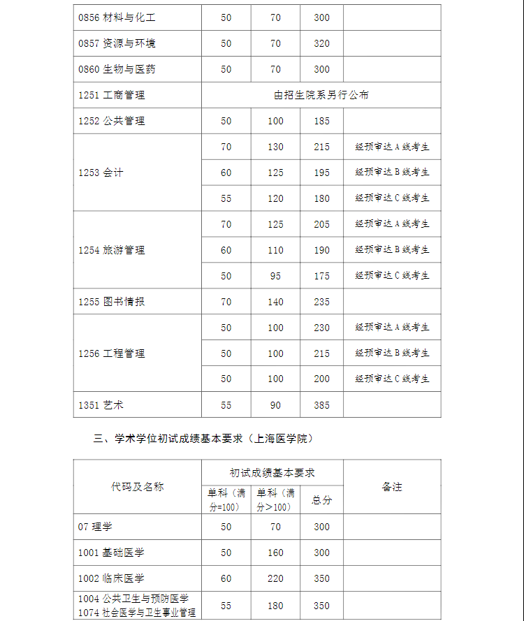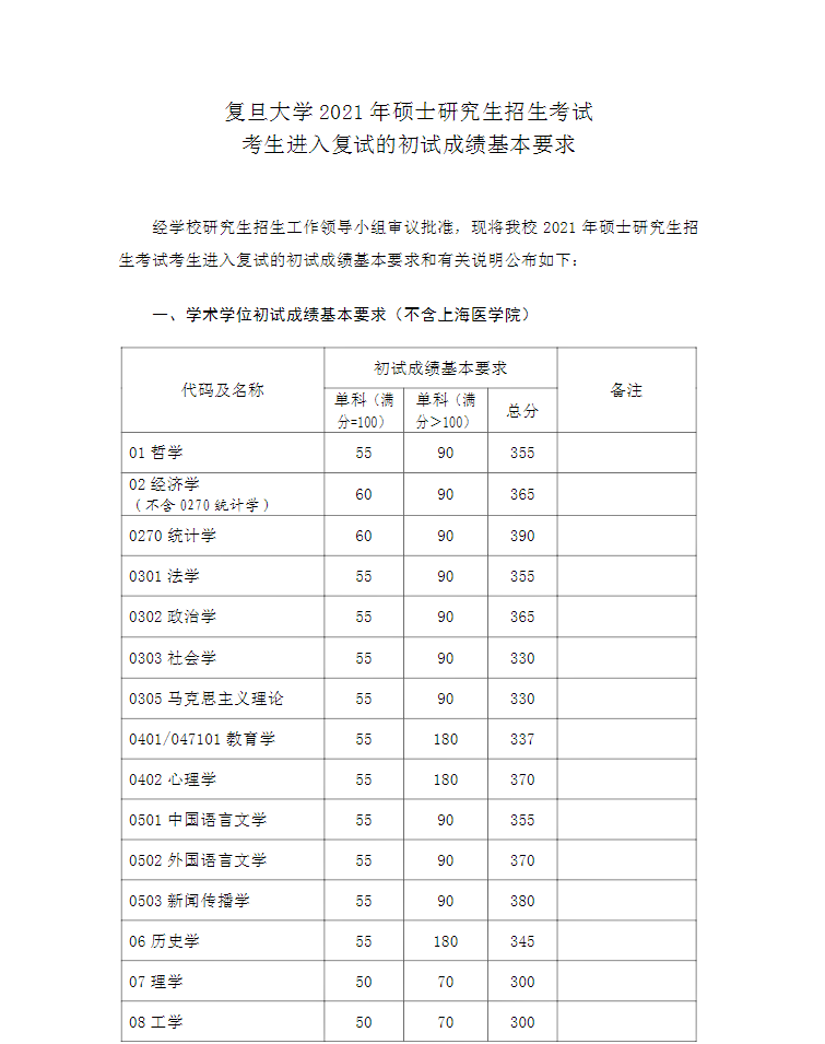 復旦大學2021年碩士研究生入學考試復試基本分數線
