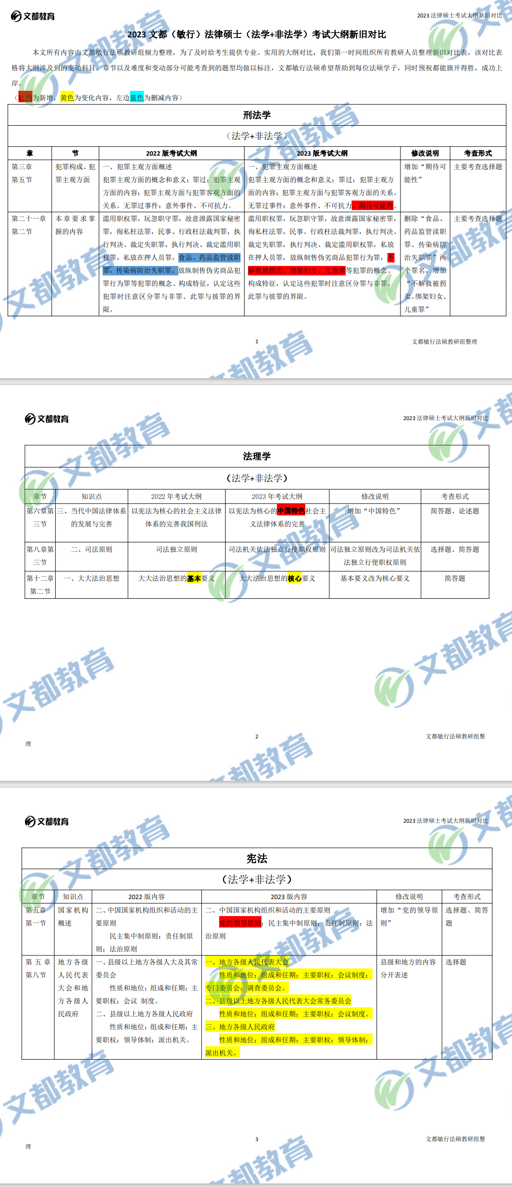 2023考研法律碩士(法學+非法學)大綱變動對比解析表