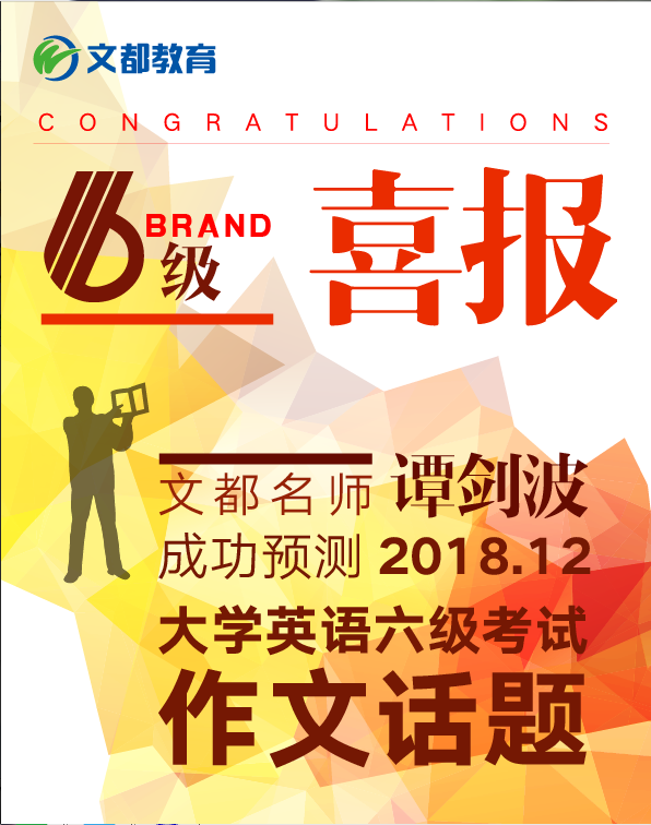 2018年12月大學英語六級考生結束了,相信同學們已經發現,文都教育的譚劍波老師又一次成功預測了作文題目,首先文都四六級帶考生們來回顧一下這次的作文真題題目!