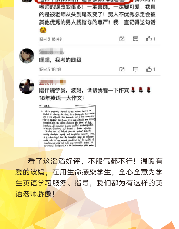 上面就是給大家整理的喜報:文都名師譚劍波成功預測12月英語六級考試作文話題的相關內容,如有更多疑問,請及時咨詢在線老師。