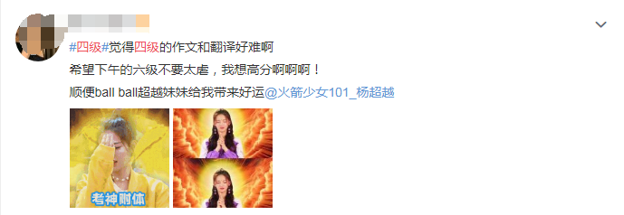 2019下半年英語四六級如約而至,英語四六級今日開考,很多網友立即發出戲娛的調侃,你的四六級考了幾次?第幾次通過的?你覺得自己這次能考多少分?哈哈哈哈,對于這來自靈魂的拷問你還能接得住嗎?為了各位考后及時查看考試答案啊,陜西文都考研小可愛一大早就一直關注著熱搜榜,實時密切的關注著英語四級考試的考情信息,這不#四級##四級翻譯預測#的話題不斷上漲,很多考生吐槽說自己是裸考啊,是小學生去考雅思,哈哈哈哈,要不要這么悲傷呢?如果你看到熱搜榜#初二學生英語達大學六級水平#會不會直接暈倒過去呢?如果你看到熱搜榜#四級#底下都比網友的留言,你怕是要偷笑咯,趕緊老看看吧。
