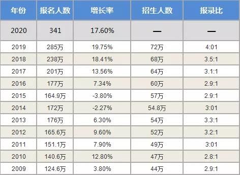 2009-2020年報考數(shù)據(jù)