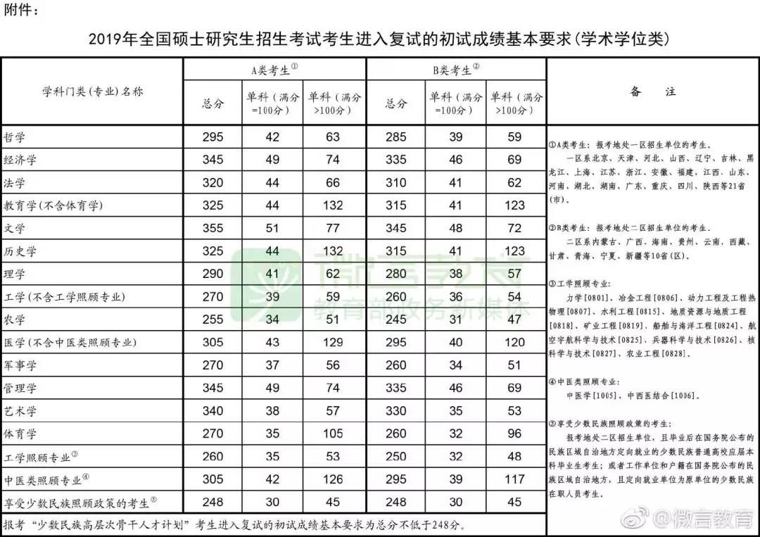 小編整理一份19年的國家線,供大家參考下: