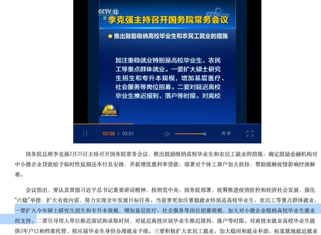 此前國務院常務會議作出了關于擴大今年碩士研究生招生規模的決定。