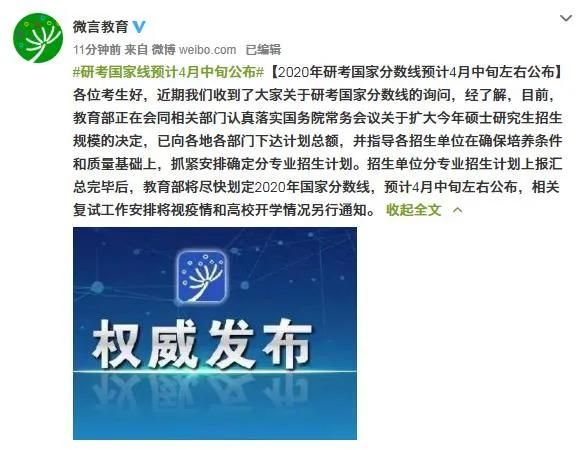 考研國家線預計在4月中旬公布這消息一出來,想必小伙伴們都與小編一樣有種心里石頭稍微落地的感覺吧,盼望了許久,終于看到絲曙光。2020國家線具體公布時間是哪一天?原文如下: