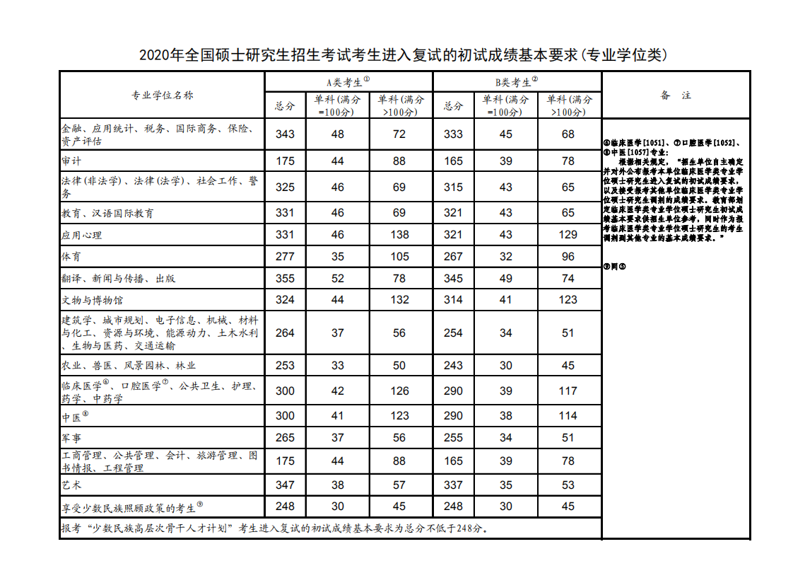 2020年研考國家線和復(fù)試安排公布(專業(yè)學(xué)位類)