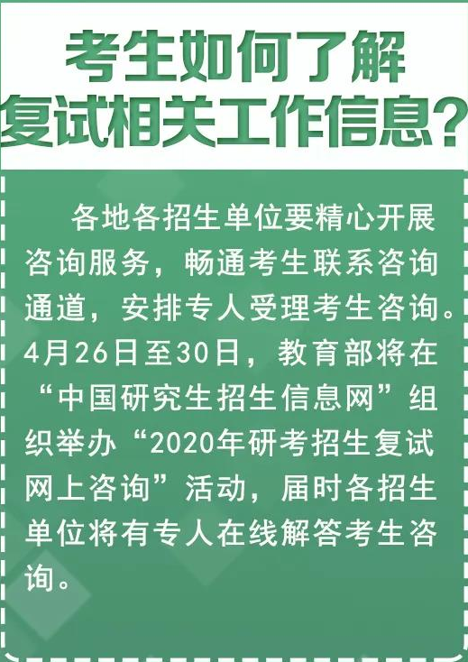 各招生單位要在省級高校招生委員會的統一領導下,統籌考慮當地疫情防控要求和學校實際情況,因地因校制宜,自主確定復試辦法。復試時間由各招生單位統籌考慮當地疫情形勢、應急響應級別以及復試工作量等,按照分區分級、精準防控、錯時錯峰、防止聚集的要求,綜合研判自主確定。復試啟動時間原則上不早于4月30日。復試方式由各招生單位根據學科特點和專業要求,在確保公平和可操作的前提下自主確定,可采取現場復試、網絡遠程復試、異地現場復試以及委托其他高校復試等。各招生單位要結合本地本單位情況,對擬采取的復試方式進行充分評估,確保復試安排的安全性、公平性和科學性。采取現場復試的,要提前制定復試工作流程、防控措施和應急預案,盡量減少不必要的環節,防止人員聚集。同時,落實好各項防護措施,做好突發情況下的應急處置準備。采取遠程復試的,要對軟件平臺的適用性、安全性、可靠性和穩定性等功能進行充分評估,確保滿足遠程復試要求。招生單位復試辦法須報省級教育行政部門疫情防控工作領導小組審核同意后向社會公布并組織實施。