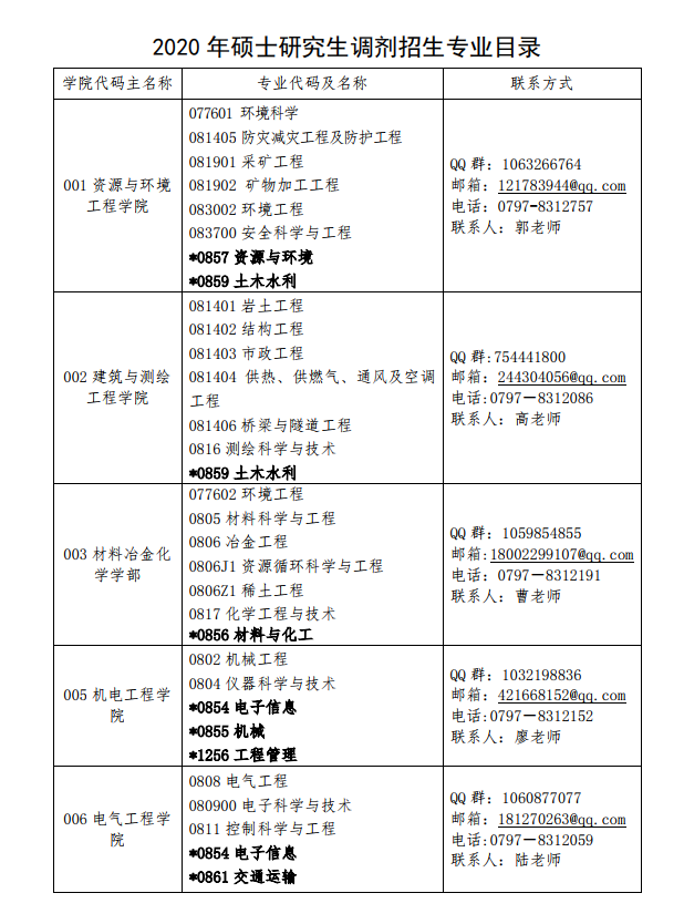 2.必須符合《江西理工大學(xué)2020年碩士研究生招生簡章》中規(guī)定的調(diào)入專業(yè)的報考條件,包括各專業(yè)備注欄中的要求。