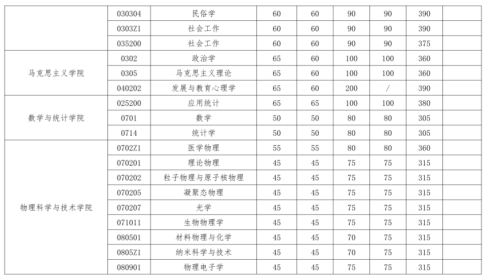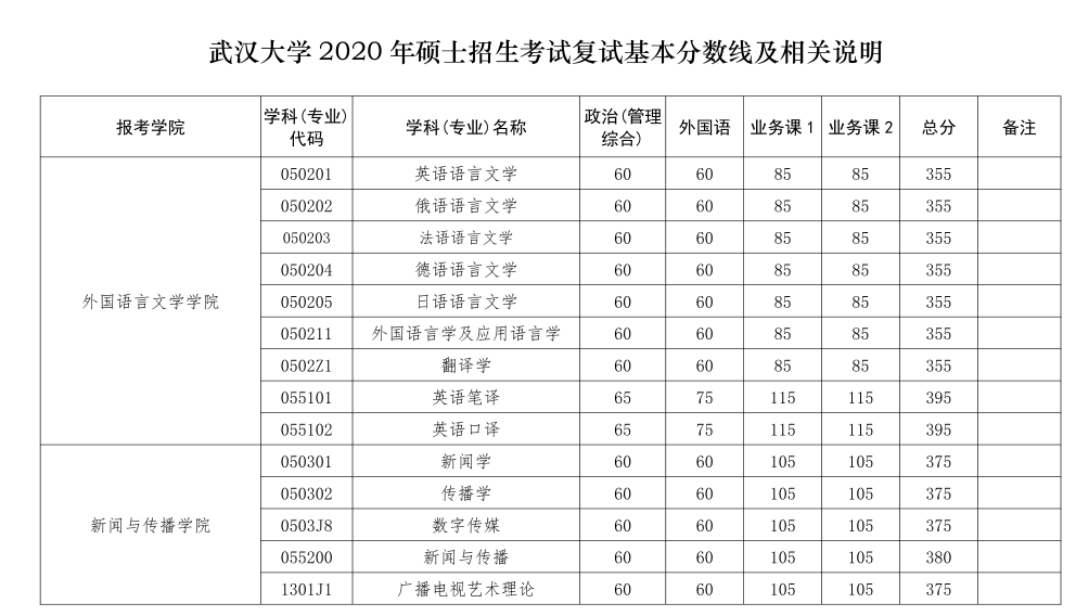 1.“少數民族高層次骨干人才計劃”和“退役大學生士兵計劃”復試分數線另行公告。