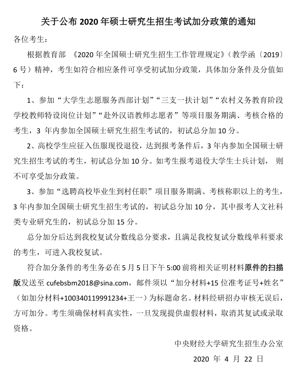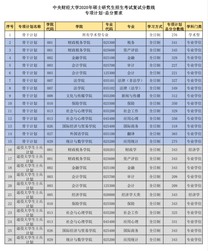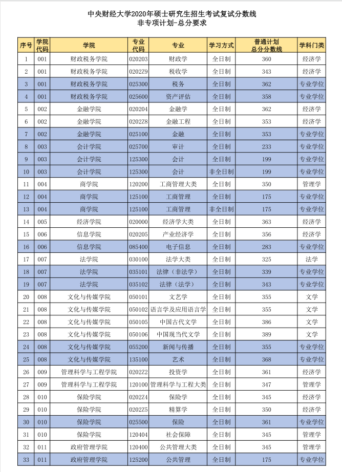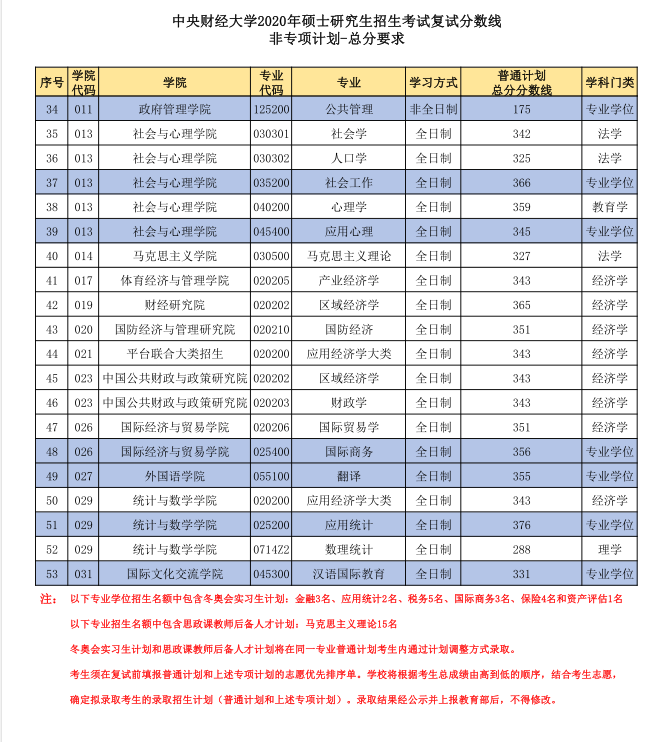 1.中央財經(jīng)大學2020年碩士研究生招生考試復試總分分數(shù)線(非專項計劃和專項計劃)