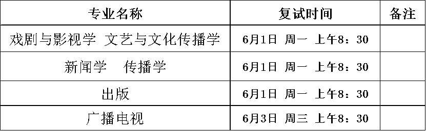2020年我院研究生招生新聞學(代碼:050301)、傳播學(代碼:050302)、戲劇影視學(代碼:1303)、文藝與文化傳播(代碼:0501z1)、廣播電視碩士(代碼:135105)、出版專業碩士(代碼:0553)接受調劑考生,熱忱歡迎全國各地優秀考生到我院繼續深造,現將有關招生調劑信息公布如下:
