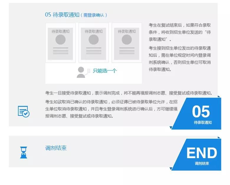 考生接到招生單位發(fā)送的待錄取通知后,須在招生單位規(guī)定時(shí)間內(nèi)登錄調(diào)劑系統(tǒng)確認(rèn),否則招生單位可取消待錄取通知。確認(rèn)信息無(wú)誤,接受待錄取通知之后,就可以安心等待錄取通知書(shū)啦!