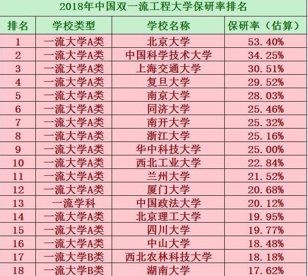 從上表我們可以看到,除了北大保研率超過50%,其他學校保研率也都較高。華東五校都達到或接近30%的保研率,特別是浙江大學、華中科技大學這樣的規模很大的學校,保研率都超過25%。總體而言,名校的保研率都比較高,很多都在20-35%之間。