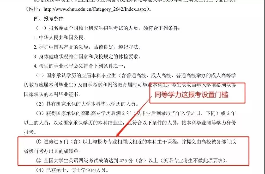 因此,專(zhuān)科考生特別注意報(bào)考學(xué)校對(duì)于同等學(xué)力的限制條件變化情況,不要一心努力備考,最后到了報(bào)考學(xué)校的時(shí)候,突然發(fā)現(xiàn)有限制,為時(shí)晚矣。