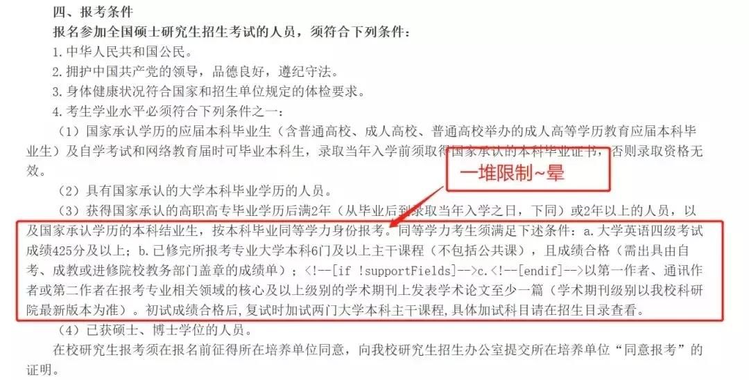 我們可以從圖片中很清晰的看到,對(duì)于同等學(xué)歷人員報(bào)考有一大堆限制,這里基本算是再次痛失一所不錯(cuò)的學(xué)校,考生要是能夠完成下邊這些限制,那么自考一個(gè)本科學(xué)歷同樣也可以輕松完成。