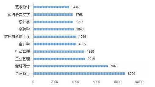 再說跨專業。跨專業也分兩種情況,一種是純粹換了專業,比如土木工程跨考漢語言文學,漢語言文學跨考會計,這些都是比較難的,而且一般都會奔著比較好考的專業。這是近幾年跨考排名前10的專業: