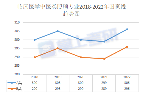臨床醫學中醫類照顧專業2018-2022年國家線趨勢圖
