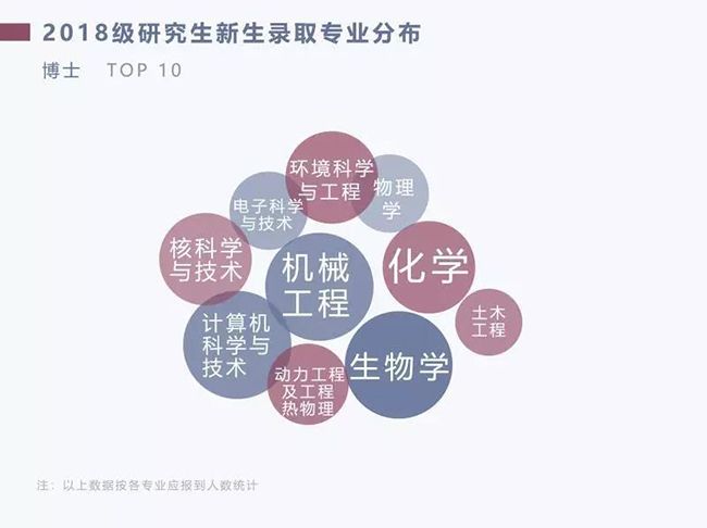 博士生新生錄取專業(yè)TOP10分別為生物學(xué)、機(jī)械工程、化學(xué)、計(jì)算機(jī)科學(xué)與技術(shù)、核科學(xué)與技術(shù)、環(huán)境科學(xué)與工程、物理學(xué)、動(dòng)力工程及工程熱物理、土木工程和電子科學(xué)與技術(shù)。