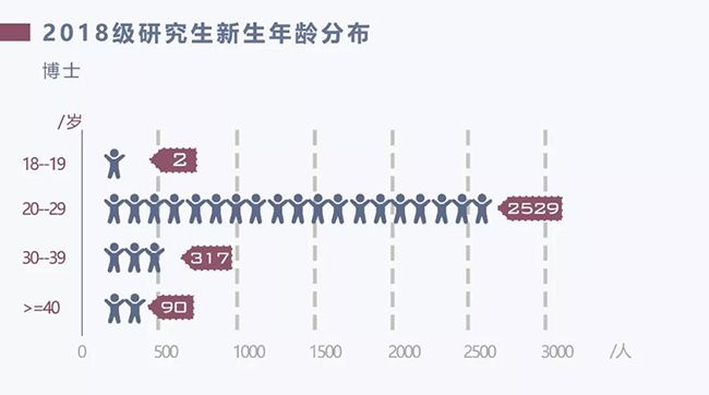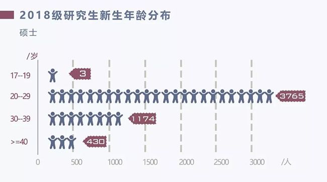 新生同學(xué)的年齡跨度較大,博士生中年齡最小的為18歲;碩士生中年齡最小的為17歲;絕大多數(shù)同學(xué)處在20-29歲區(qū)間。