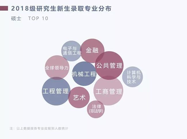 碩士生新生錄取專業(yè)TOP10分別為工商管理、公共管理、金融、工程管理、機(jī)械工程、全球領(lǐng)導(dǎo)力、藝術(shù)、電子與通信工程、法律(非法學(xué))和計(jì)算機(jī)科學(xué)與技術(shù)。