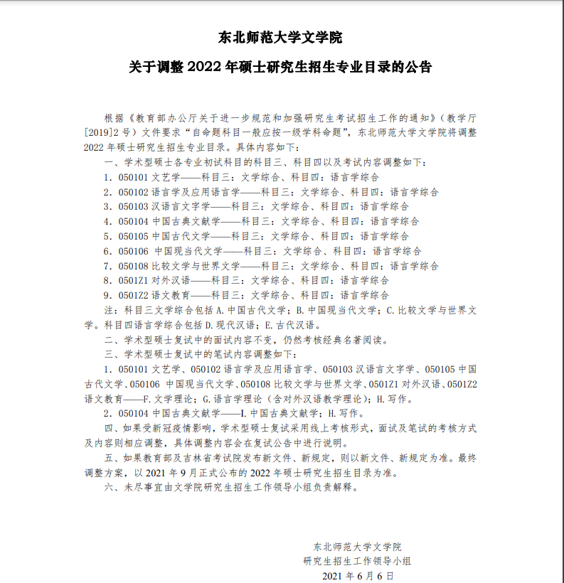 :東北師范大學(xué)文學(xué)院2022年碩士研究生招生專業(yè)目錄