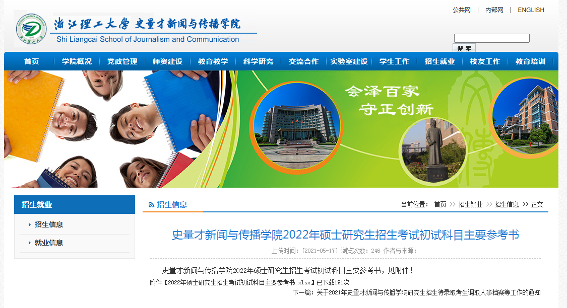 點(diǎn)擊查看原文:浙江理工大學(xué)史量才新聞與傳播學(xué)院2022年碩士研究生招生考試初試科目主要參考書