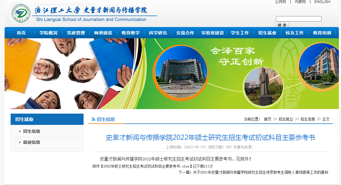 史量才新聞與傳播學(xué)院2022年碩士研究生招生考試初試科目主要參考書,見附件!