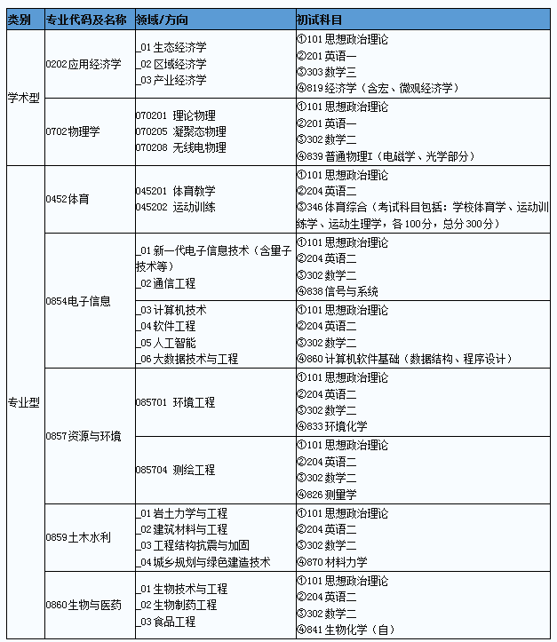 我校2022年新增7個一級學(xué)科碩士授權(quán)點,相關(guān)專業(yè)信息及初試科目如下表,更具體的招生要求、專業(yè)目錄及參考書目詳見我校2022年碩士研究生招生簡章。