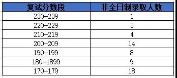 非全日制錄取57人;復(fù)試最高分237分,最低分170分;錄取初試最高分237分,最低分170分。