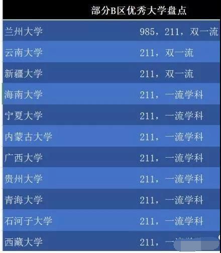 不得不說,在B區高校中,每年優秀考生的調劑大戶便是僅有的985、211和世界一流大學——蘭州大學,這所高校的歸納實力是非常強的,最大的問題便是地理位置太差,導致每年的本科生源和研究生生源和同等級高校有很大的差距。但是,每年考研調劑中,蘭州大學仍是能收獲不少優異考生的,特別是本科高校是985大學且報考院校為C9等級的學校落選學生,一直都是蘭大的最愛調劑生。除此之外,自從雙一流工程公布后,西部區域的新疆大學和云南大學也晉升為了世界一流大學建造高校,信任在今年的調劑中也會有不錯的表現。