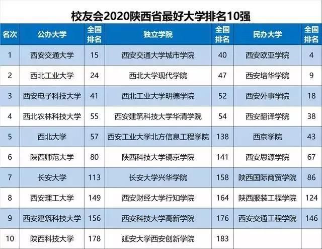 艾瑞深校友會(huì)網(wǎng)2020陜西省大學(xué)排行