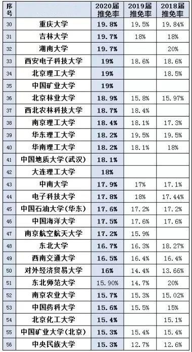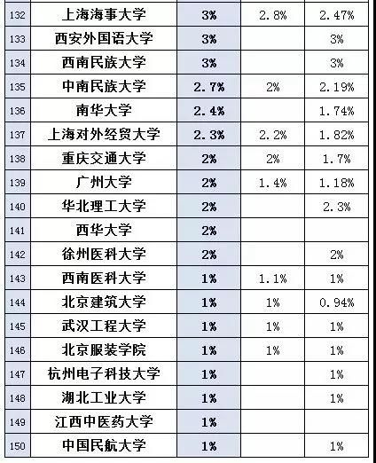 下面來看下整理好的150所高校2020屆推免率,有些學校官網外網公示不全,數據無法統計。