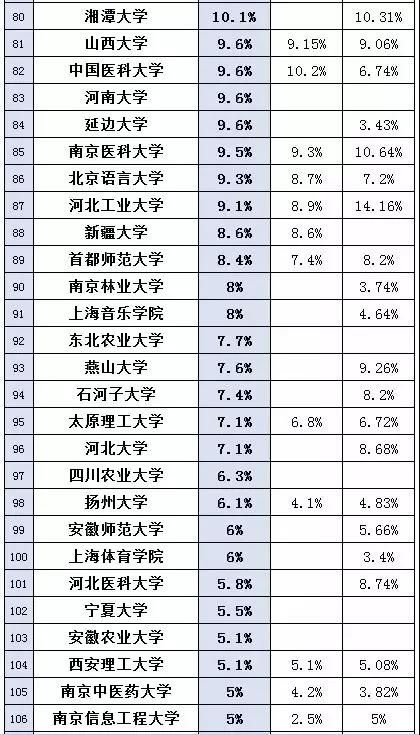 ?中國藥科大學、南京師范大學具有經教育部備案的國家基礎學科人才培養和科學研究基地班,因此推免率超過10%。