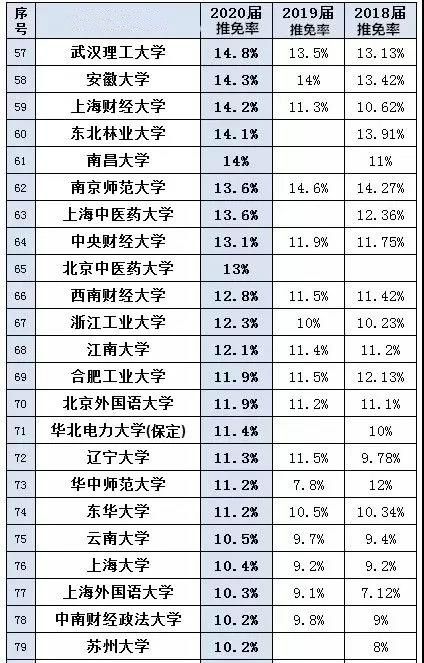 1、統計推免率15%左右或以下的一流院校中的B類院校,如西北農林科技大學、云南大學等。