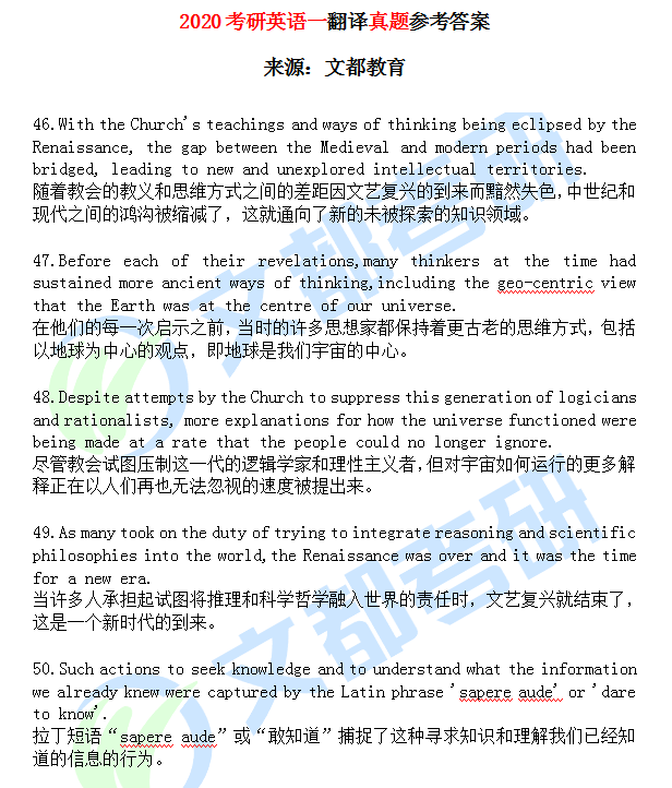 上面就是給大家整理的2020考研英語(一)翻譯真題及參考答案的相關(guān)內(nèi)容,如有更多疑問,請及時咨詢在線老師。