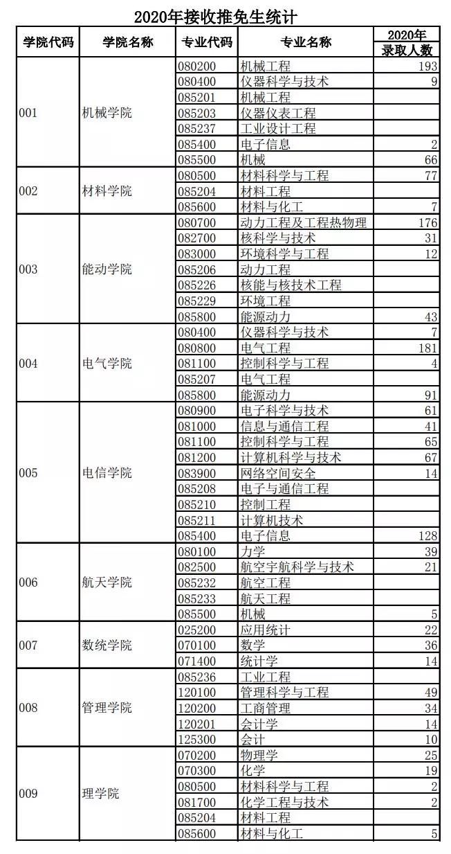 西安交通大學(xué)2020年接收推免生統(tǒng)計(jì)