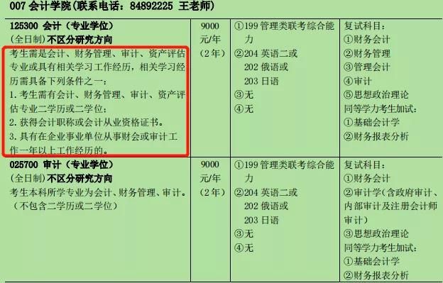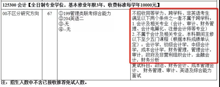 跨考限制:只接收會計學(xué)、財務(wù)管理、審計學(xué)三個本科專業(yè)考生