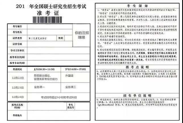 去年考前一周,考生可憑網報用戶名和密碼登錄“研招網”自行下載打印《準考證》。《準考證》使用A4幅面白紙打印,正、反兩面在使用期間不得涂改。考生憑下載打印的《準考證》及有效居民身份證參加初試和復試。