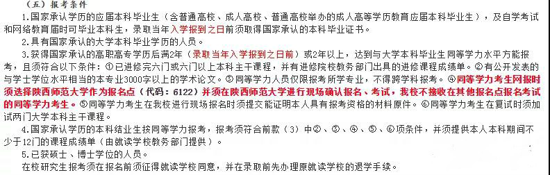 陜西師范大學教育學接受同等學力考生報考,但是在教育部要求基礎上,額外要考生進修6門以上本科課程、公開發表3000字以上專業相關論文、不可跨專業報考。